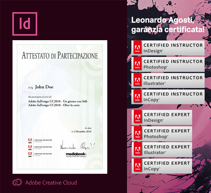 Abbiamo raccolto tutti i messaggi e contattato un relatore di esperienza indiscussa come Leonardo Agosti (in fondo tutte le info su di lui) capace di dare risposte non solo su InDesign ma su tutta la suite Adobe grazie alla sua formazione ventennale e piena di riconoscimenti e risultati certi. Abbiamo unito la nostra esperienza con la sua e creato un programma diviso in due giornate: