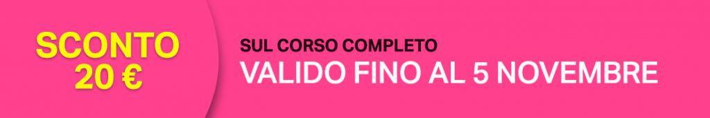 Dal 15 fino al 25 novembre lo sconto si dimezzerà (10 Euro di sconto per il corso intero e 5 Euro per la giornata singola) e perderai l’occasione di iscriverti con il massimo risparmio.